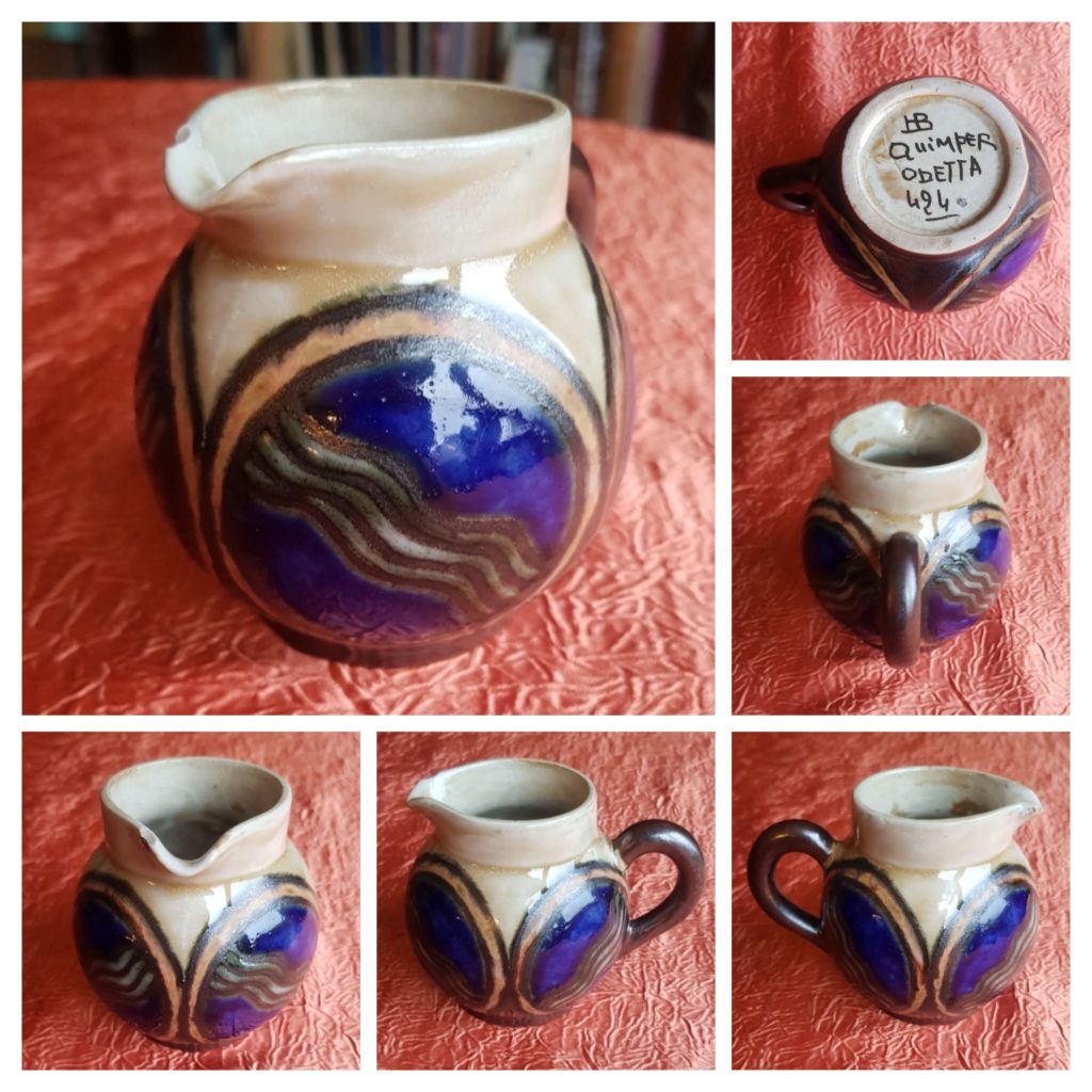 Deux crémiers trouvés dans une future vente à Quimper …Pourquoi ? Et bien, parce que je ne les avais…JAMAIS VUS !! Pour ce qui est est de la taille du crémier 424, il doit faire 9 cm car sur la photo de la vente, il est à côté d’une petit vase que j’ai et c’est ainsi très facile de voir que celui-ci est de la plus grande taille.